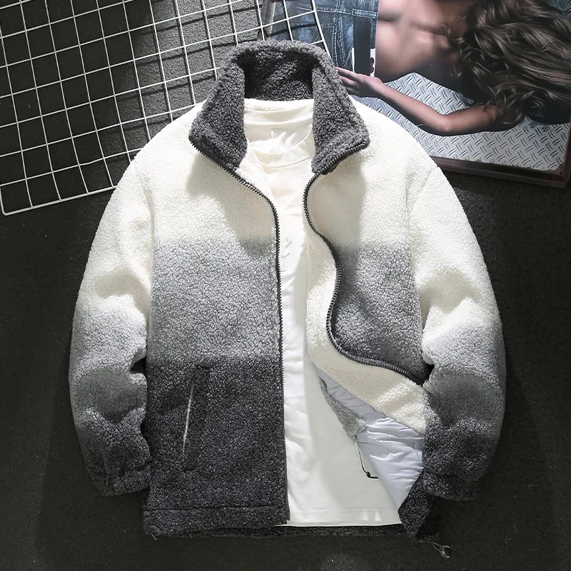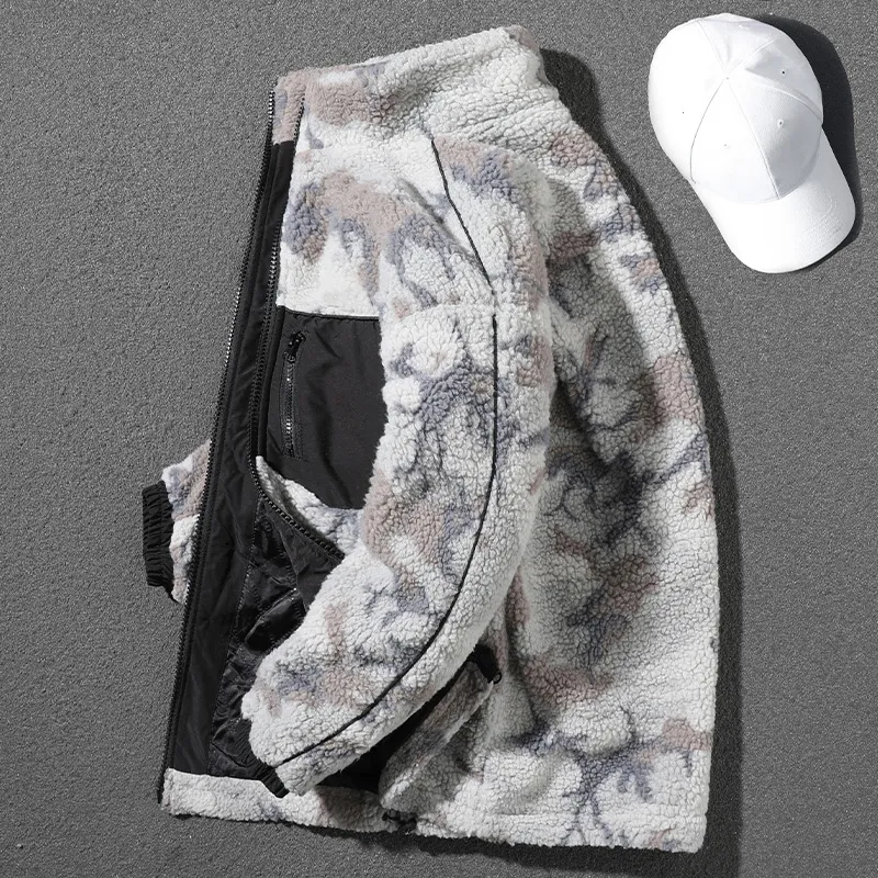 • Handsome gray camouflage sherpa jacket for men in winter